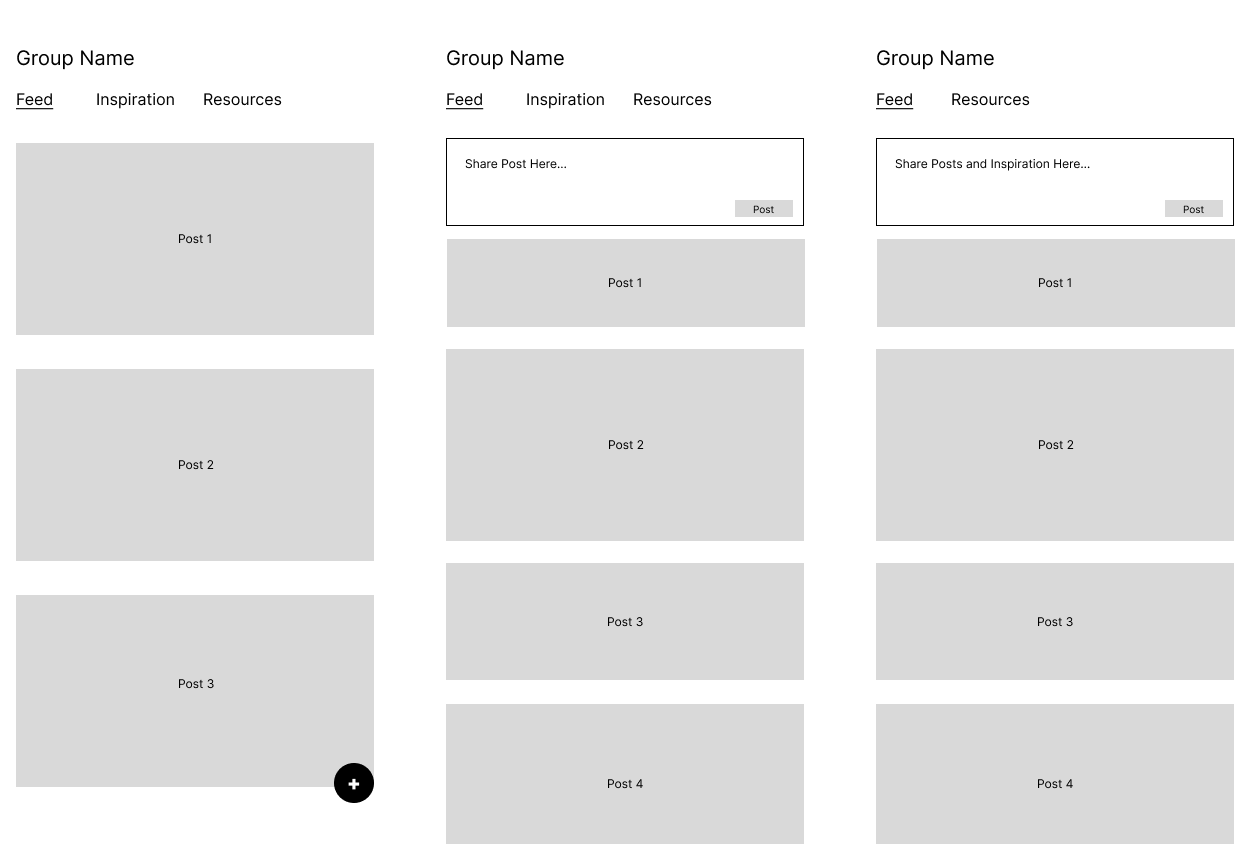 My key screens included the following: home page, group view, learning resources page, and view of groups joined.